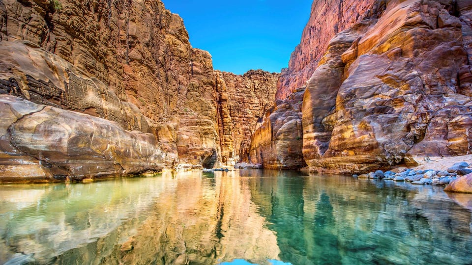 This is one of the most exciting adventures in Jordan – a hike through the Wadi Mujib sandstone gorge, Jordan's most famous river canyon.