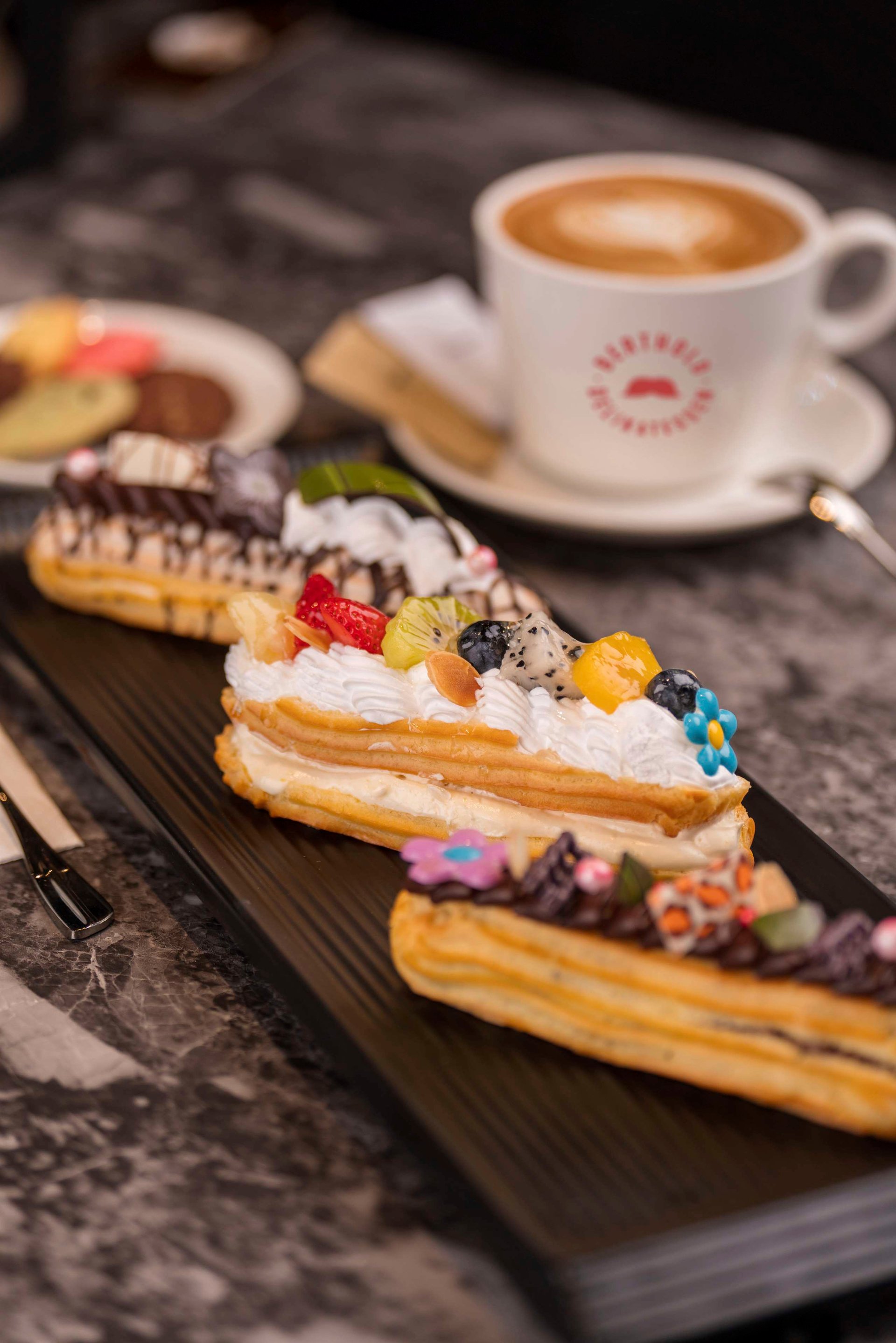 Enjoy an assortment of sandwiches, salads or coffee paired with pastries, cakes, and pralines, all crafted using homemade natural ingredients to ensure the highest quality and taste.