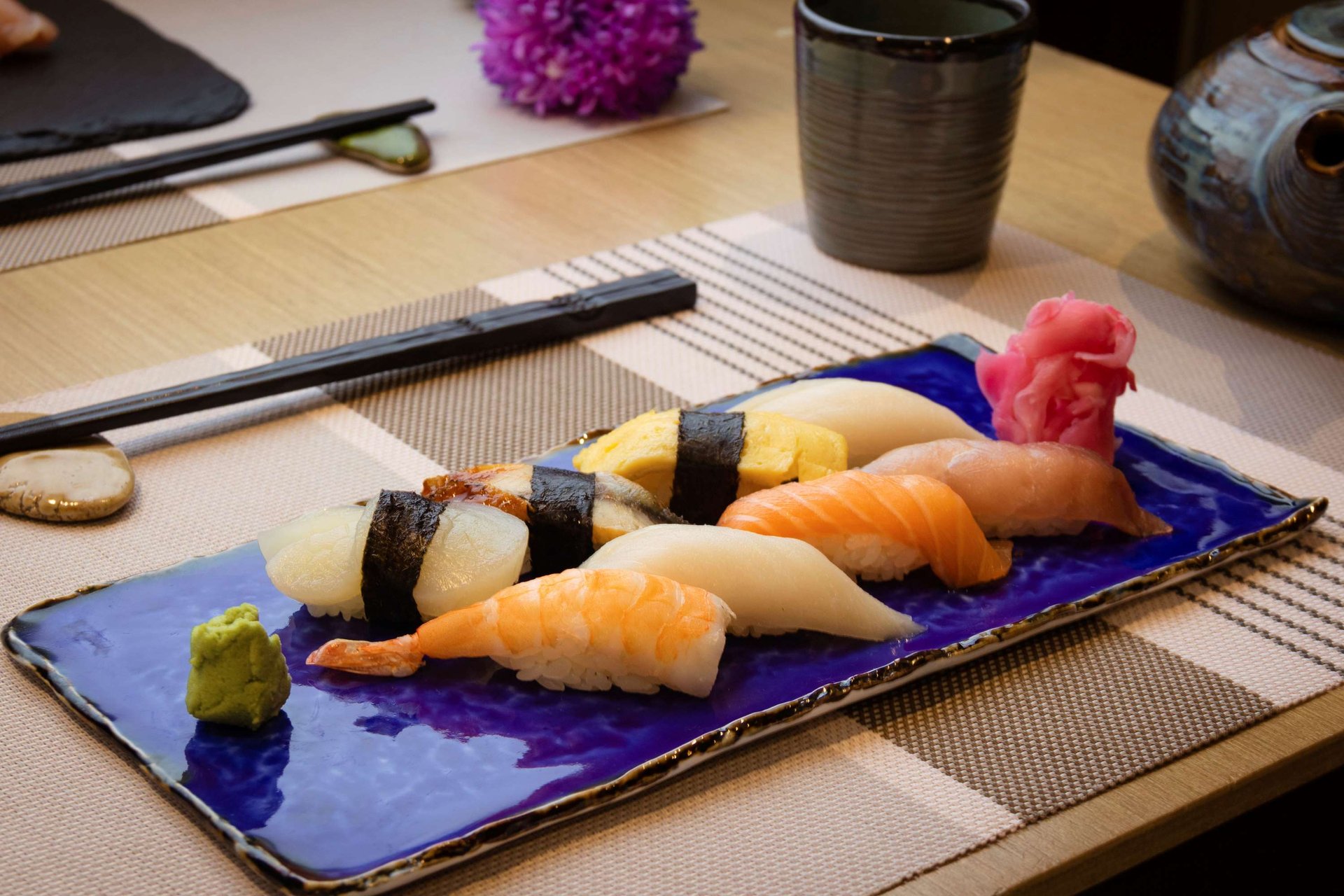 Our Sakura sushi bar offers a simple yet cosy ambiance, with paintings of the artist Shuren, as well as custom handmade pottery by Zoljargal.