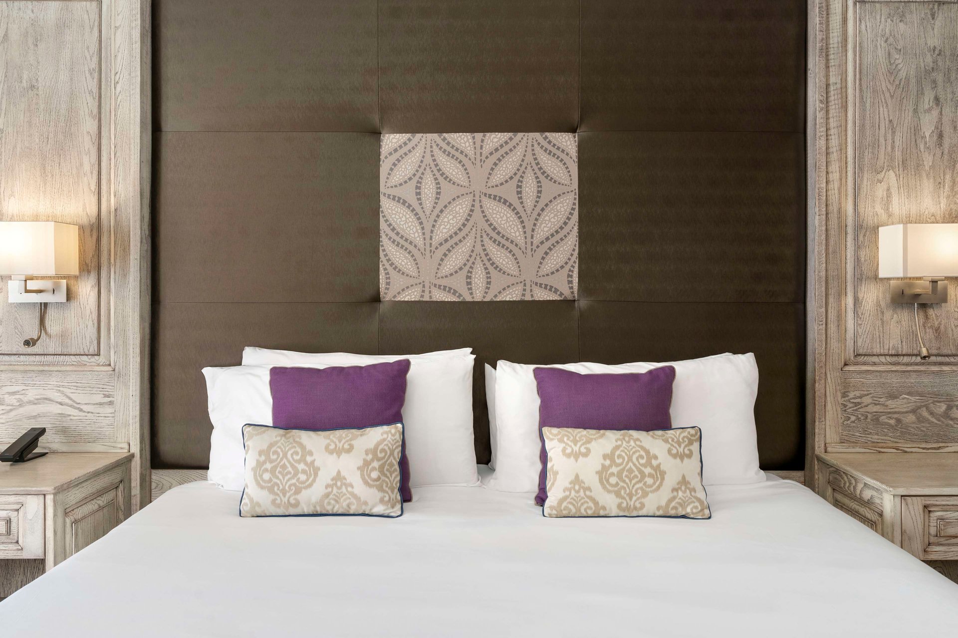 This two bed room suite with impressive views, is conveniently located in the main building. With an elegant spacious living room, two luxurious marble bathrooms with bathtub and separate shower, an additional courtesy bathroom, and a fully equipped kitchenette, this elegant Suite is also a perfect haven for families.