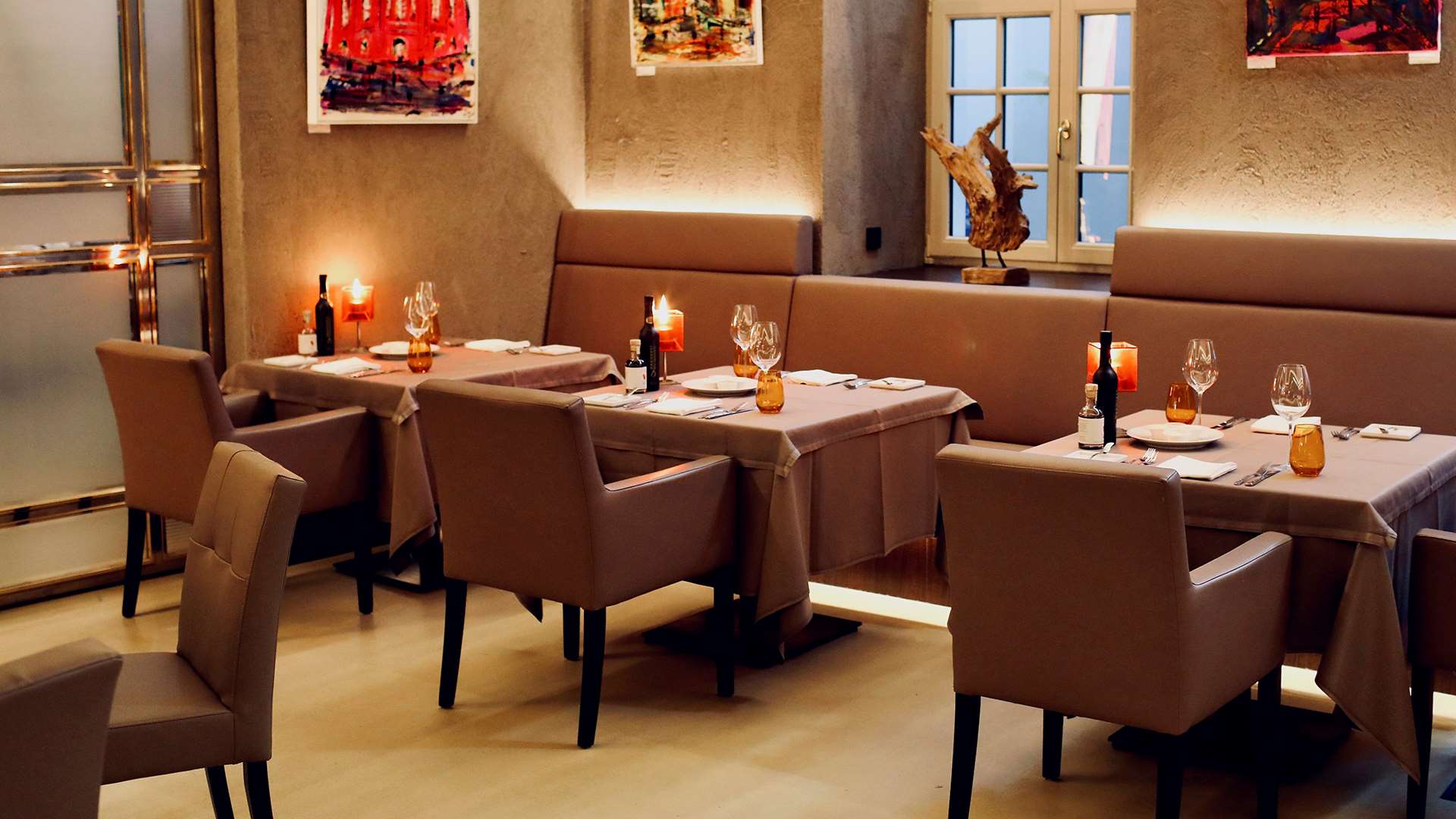 The Kastenmeiers Restaurant offers its guests a classy and unique dining room. The walls are clay plastered and hung with artworks of different styles. A special feature of the restaurant are its sweet and saltwater aquariums above the open kitchen, filled with trout, chars and lobsters. With seasonal ingredients from the region and refined fish dishes of the best quality, the offer of the gourmet chef Gerd Kastenmeier is captivating. An exquisite selection of wines rounds off the pleasure.