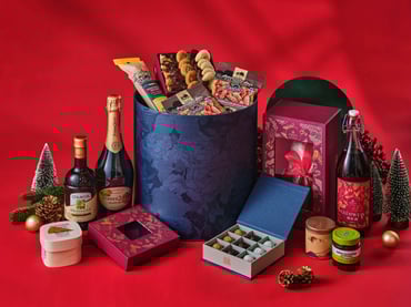 Christmas hampers are great choices to share the joy of the season with friends, partners and corporate clients. Selected items cover all the holiday favourites, including a bottle of wine or champagne, dry sausage selections, Christmas black tea, as well as the homemade festive season specials, like Glühwein, stollen, cookies and chocolate praline box.