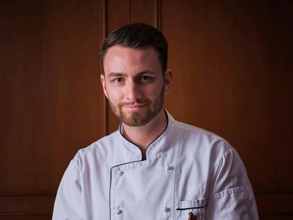 ‘I often spend summers with my family in Bavaria, enjoying the beer gardens all day long’, shared Leon, describing the inspiration behind his dish. ‘Whole fish roasted on a wooden stake is a must-try, much like how people in China enjoy beer and skewers during the summer. The fish is skewered on a giant wooden stake and grilled over charcoal, resulting in a crispy skin and tender, juicy flesh with a smoky flavour. It’s delicious without much seasoning.’