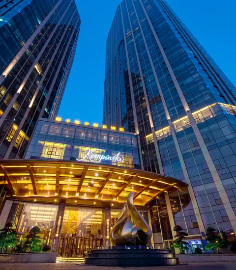Kempinski Hotel offers 408 rooms and luxury suites, plus an International Conference Centre, as well as a range of versatile function areas.