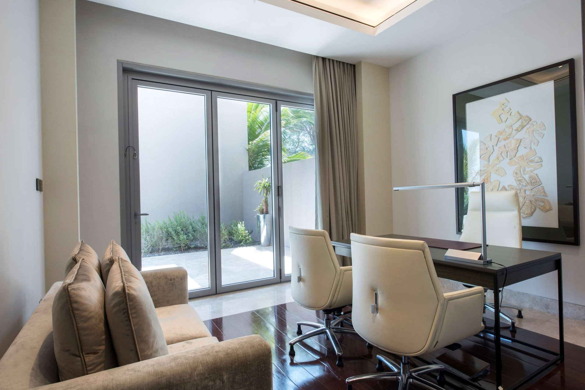 Not just a suite; it's an experience! This exquisite suite offers an unmatched experience with its own private pool.  The suite itself is a haven of elegance, featuring a lavish dining and living area, an exclusive media room, and a fully-equipped office catering to your professional needs.