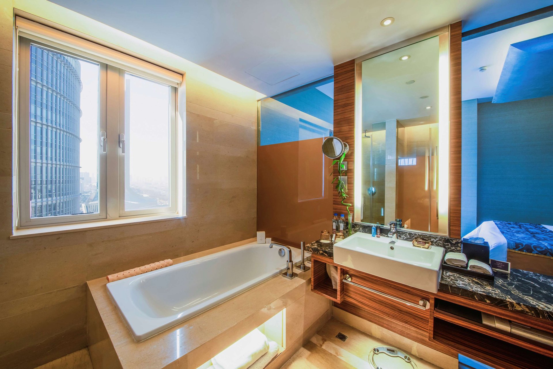 Don't get lost when you enter into this spacious suite with one elegant bed room and a living room overlooking the People's Square and city skylines. Don't want to be bothered by others? Enjoy free afternoon tea with friends or cocktail socialization with business clients in the Executive Lounge at any time.