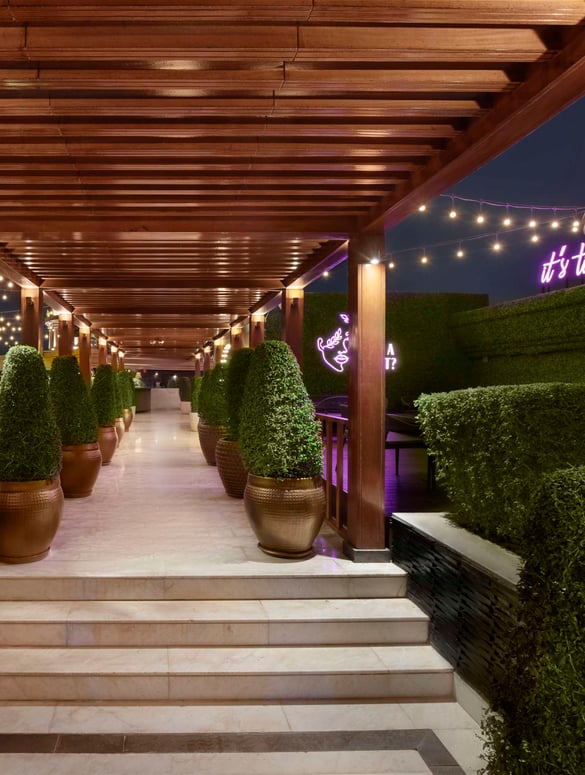 As the sun sets, the Secret Garden comes to life with pumping vibes around an enclosed lounge. It’s a place to come together, be inspired and be part of Doha’s coolest, fun-loving rooftop community.