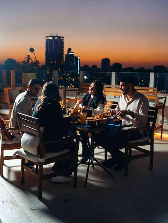 The Rooftop is Kempinski Nile Hotel Garden City Cairo's luxurious open-air dining venue above the busy city streets, serving international cuisine.