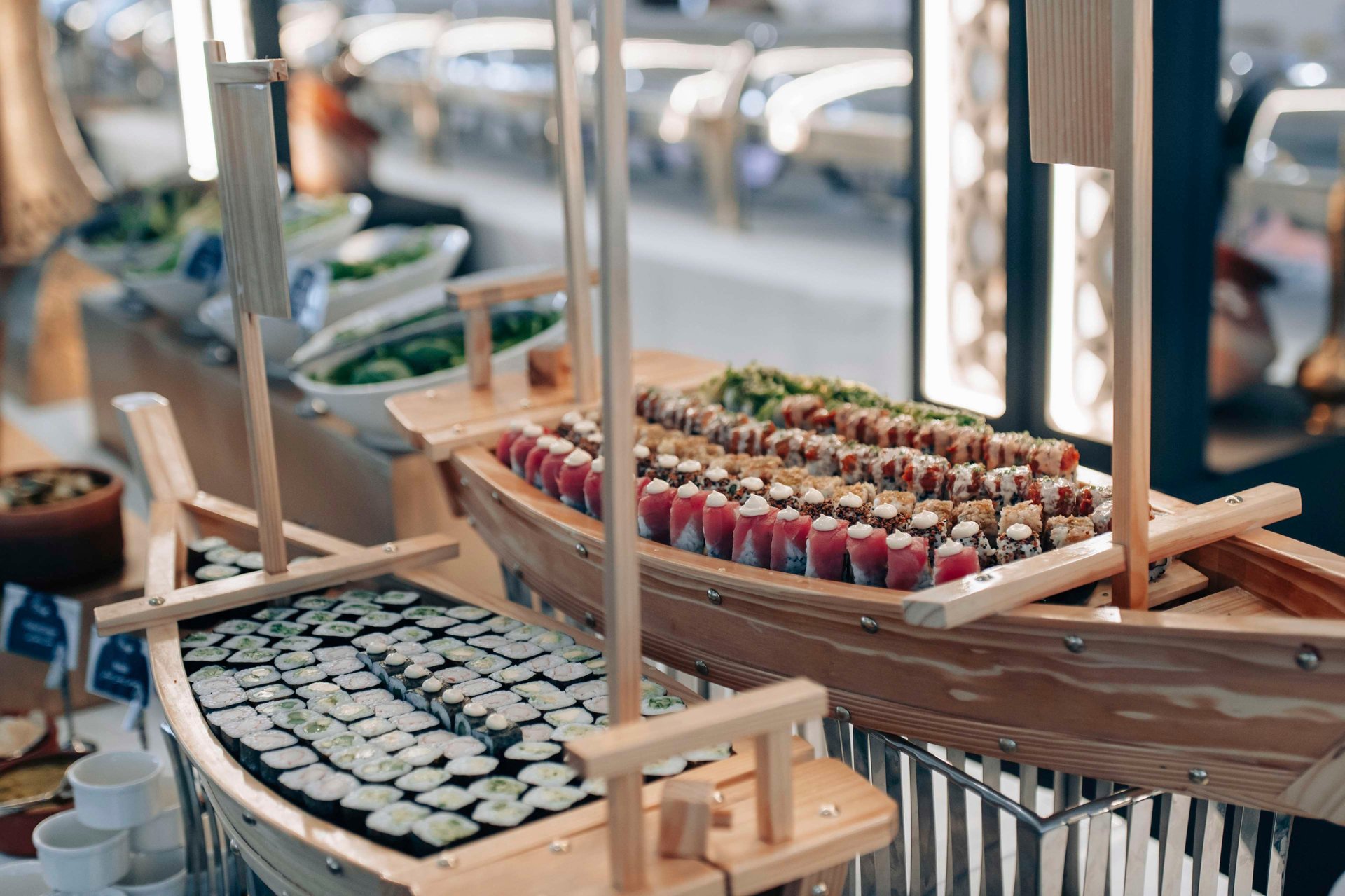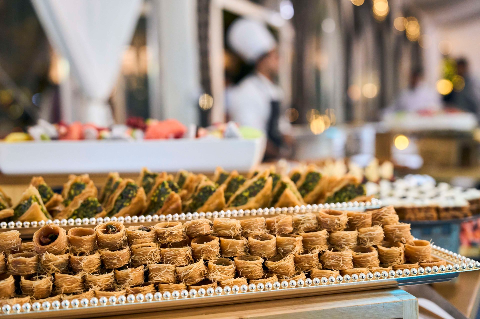 Step into the enchanting realm of Layali Ramadan Tent, cradled within the verdant embrace of Kempinski Hotel & Residences Palm Jumeirah. As twilight descends, surrender to the soul-stirring essence of the season with our lavish Iftar and Suhoor feasts. With both indoor opulence and alfresco charm, guests are treated to live cooking stations, where the air dances with the aroma of BBQ, saj, shawarma, and pasta.