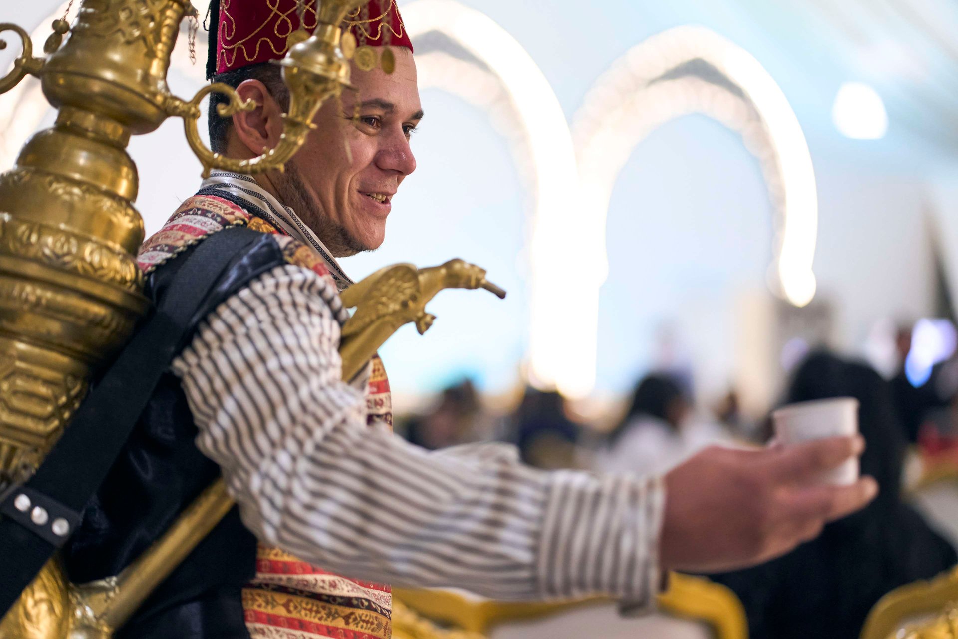 Inside, immerse yourself in a culinary odyssey, boasting over 100 Arabic and international treasures, from tantalizing mezze to the opulent lamb ouzi corner. Treat your senses to Arabic hot and cold desserts, accompanied by the aromatic allure of roving Arabic coffee and Tamer Hindi servers. Underneath the starlit canopy, indulge in the timeless ritual of shisha, as the night unfolds its splendour.