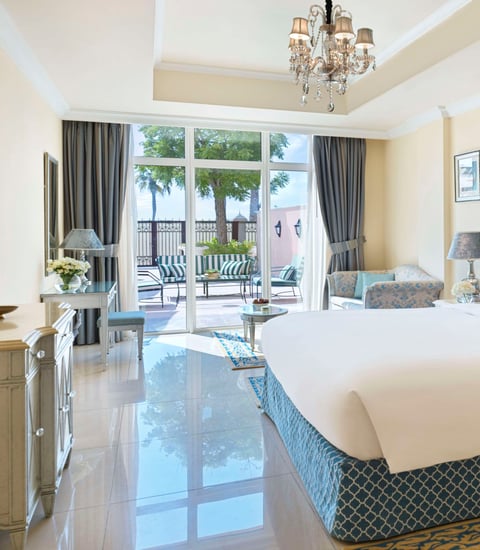 Experience unrivaled privacy and luxury in our Deluxe Three-Bedroom Suite, with breathtaking views of the Arabian Gulf or Palm Lagoon from your terrace, alongside lavish living spaces.