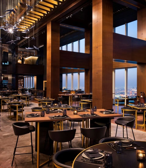 Situated on the 61st floor, the restaurant features a vibrant décor that fuses modern Asian and inventive design. The menu ranges from sushi and sashimi to curry dishes, grilled entrees, and wok dishes.
