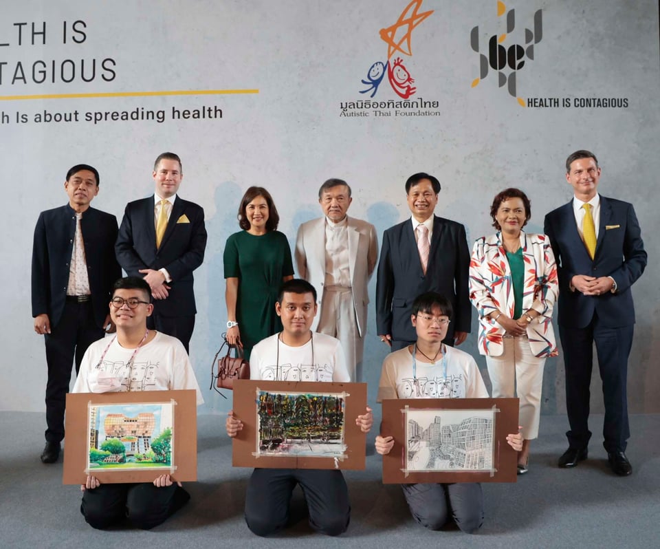 Bangkok, 12 December 2022 – Sindhorn Kempinski Hotel Bangkok and Siam Kempinski Bangkok joined hands with the Autistic Thai Foundation to launch BE Health, a project to support, promote and develop the quality of life and health of autistic children. Presiding over the event at the Lobby of Sindhorn Kempinski Bangkok were Mr. Richard Schestak, Managing Director of Siam Kempinski (far right) and Khun Chusak Chantayanon, President of the Autistic Thai Foundation (3rd from right). Distinguished guests joining in were Mr Chalaluck Bunnag, Managing Director of Siam Sindhorn (centre), Chonpreya Pacharaswate, Deputy Managing Director for Hotel Business Group of Siam Sindhorn (3rd from left) and Mr Thaddaeus Weiss, Hotel Manager of Sindhorn Kempinski (2nd from left).
