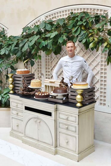 Steffen Holle, head pâtissier of The Hotel Adlon Kempinski Berlin, is now in charge of the talented nine-person sweet brigade. In this position, he is responsible for the entire range of preparations and cooking of sugary creations offered at the luxury hotel at the Brandenburg Gate.