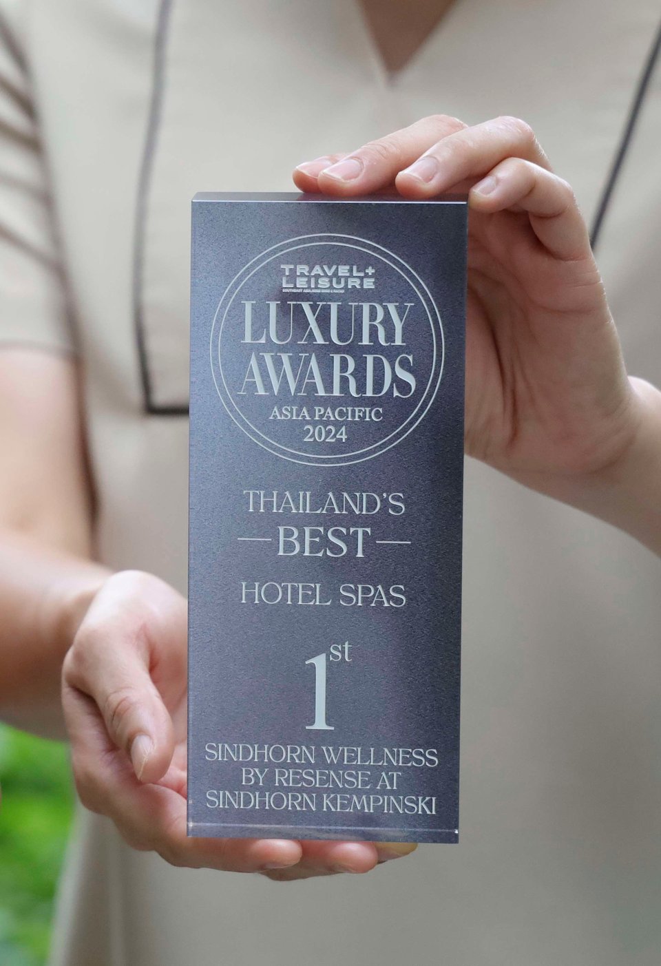 Bangkok, 18 June 2024 – Sindhorn Wellness by Resense, the renowned spa facility at Sindhorn Kempinski Hotel Bangkok, continued to be recognized the second consecutive year as the 1st Thailand’s Best Hotel Spa at the Travel + Leisure Luxury Awards Asia Pacific 2024 held recently. This prestigious accolade further solidifies the hotel’s commitment to providing exceptional wellness experiences for its guests.
