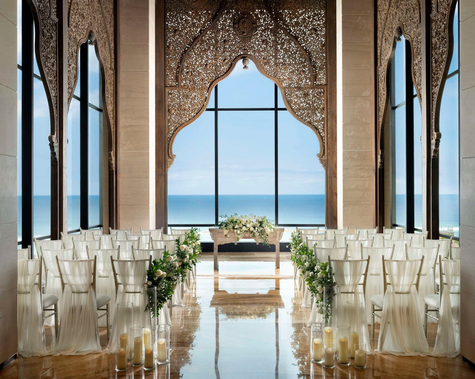 Breathtaking views and lavish gardens paint the background as weddings take on a spectacular stage at The Apurva Kempinski Bali. A luxurious wedding destination in Bali with a majestic view is offered. Accommodating up to 100 people, the oceanfront Apurva Chapel provides magnificent grand celebrations with an adjacent two-storey, versatile Three-Bedroom Villa and two infinity pools. Providing a more intimate union to compliment your choice of wedding venue in Bali, the ocean-view Amala and Kimaya Cliff Chapels are available to accommodate up to twenty people.