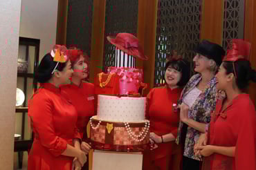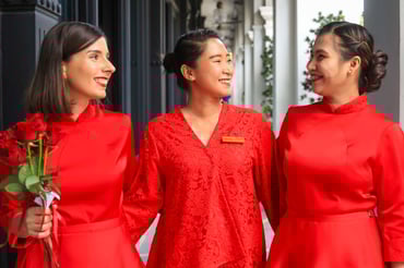 In conjunction with the 14th birthday of Lady in Red, The Capitol Kempinski Hotel is also launching a new uniform for its brand ambassadors. Specially commissioned by esteemed Singaporean fashion luminary Esther Tay, the striking all-red ensemble draws inspirations from heritage, art and modernity, paying homage to Singapore’s rich cultural tapestry while reflecting Kempinski’s commitment to impeccable hospitality. Crafted from exquisite satin in the iconic Kempinski red, the design infuses tradition with contemporary hostess flair. An elegant Mandarin collar exudes grace and hospitality, paired with a belted waist tailcoat draped over an intricate red lace knee-length skirt to bring out the Peranakan identity.