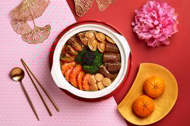 The Capitol Kempinski’s Signature “Pen Cai” is perfect for any home gathering (S$408 nett). This layered dish symbolising wealth and abundance is served in a claypot and comes generously loaded with top-class ingredients, including Abalone, Fish Maw, Sea Cucumber, Tiger Prawns, Fish Maw and much more - all simmered and cooked to perfection in an aromatic sauce - perfect for your family reunion dinner.