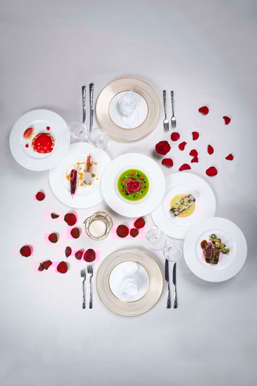 15 Stamford will be elevating the dining experience with a romantic five-course dinner, with acoustic live band performance to set the mood for the evening. The evening starts with an indulgent Mebachi Maguro with Oscietra Caviar, bursting with refreshing flavours from the mojito gel. The second course sees sweet Carabinero Prawn served on a bed of pearl couscous, preserved sausage crumbs and pancetta foam. For mains, choose between the Rainbow Trout with salmon roe and sea urchin emulsion and the Satsuma Wagyu Beef Strip Loin with fresh truffle. The dinner ends on a saccharine note with the Chocolate Cremeux served with lingon berry ice cream. Couples also receive a welcome drink, a mini bottle of Billecart Salmon Brut Champagne and a stalk of rose as part of the celebration. S$356++ per couple, with wine pairing at an additional S$108++ per person. Book here.