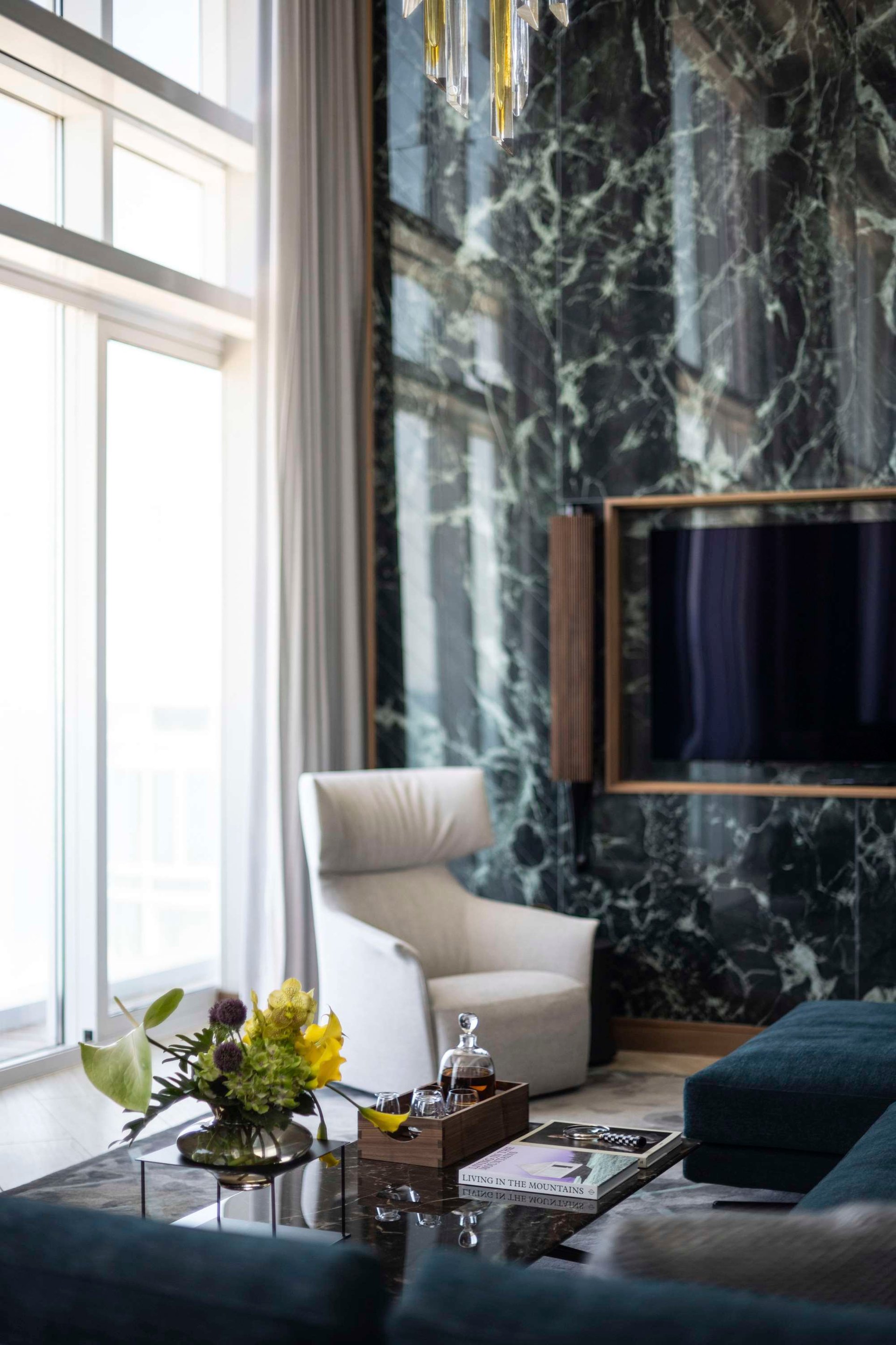 Exclusive Penthouse Features: Designed for both grand entertaining and intimate relaxation, the light-flooded living room is a masterpiece of design. It boasts tailored finishes with playful designs, original artwork, a baby grand piano, and bold furnishings, creating an inviting atmosphere perfect for lounging and dining. And for the ultimate in personalised service, Butler service is included to cater to your every need.