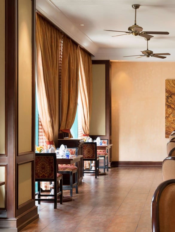 Il s’agit d’un restaurant buffet ouvert toute la journée proposant une cuisine internationale aux saveurs combinées des épices méditerranéennes et asiatiques.
