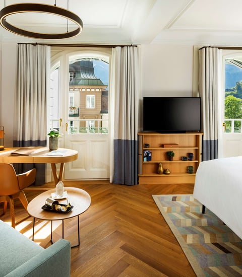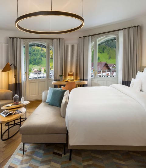 Les Chambres Premier séduisent par leur balcon et promettent des vues uniques sur les Alpes tout autour.