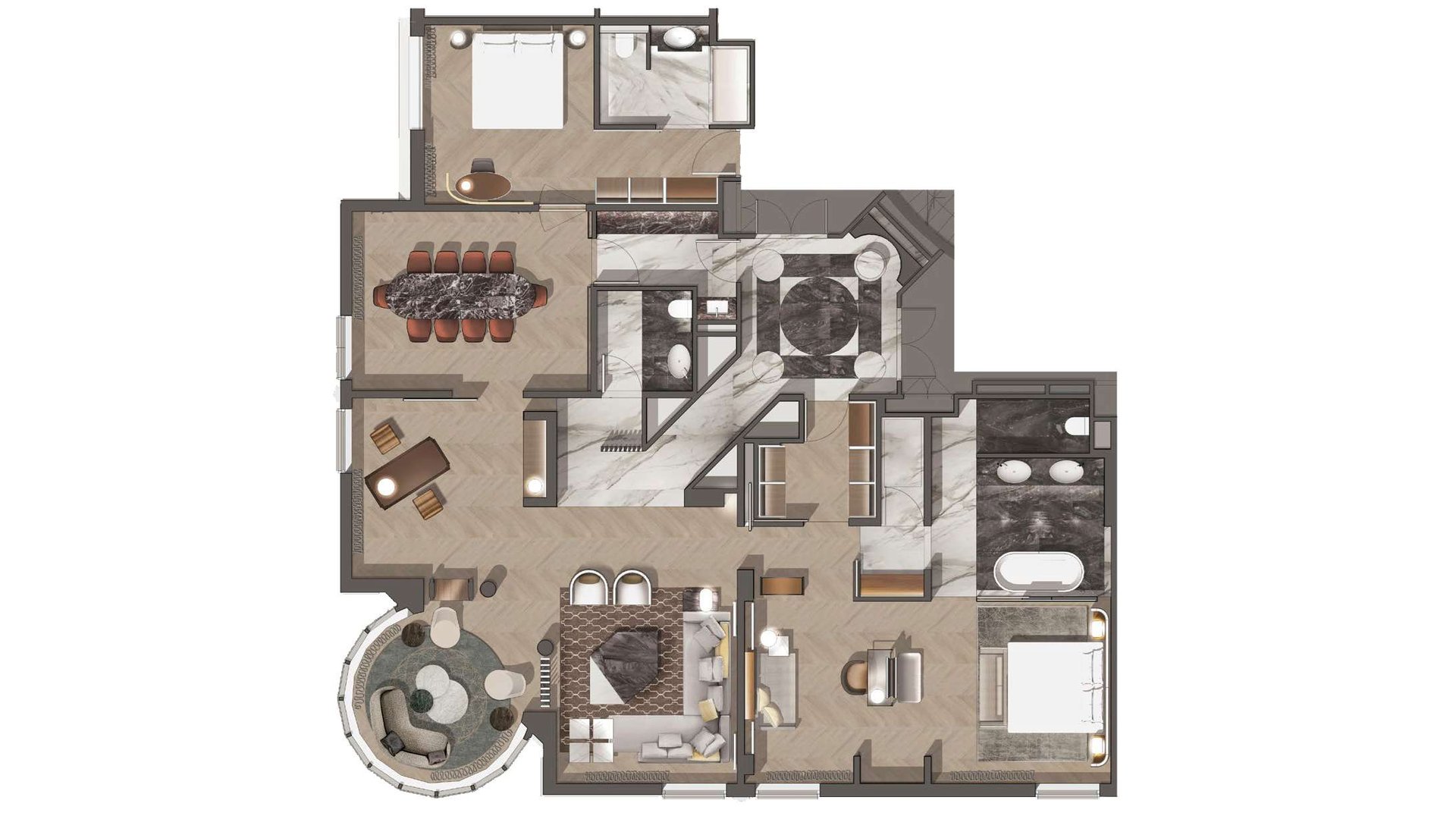 A lakosztályok mindig rendíthetetlen nyugalommal várnak, a szállodán belül is külön egységet képezve, mintegy belső szentélyként. Mindegyik lakosztály mást kínál, de ugyanarra törekszik: hogy azt érezzem, ez az én terem, az én bástyám és – ha csak arra a rövid időre is –, az én otthonom. A cél valójában pont az időtlenség megteremtése, hogy kényelemmel időzzünk a szobákban, ne érezzünk semmilyen sürgetést, a teendők felelősségét.