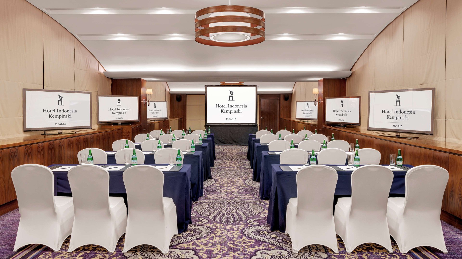 TV LED, proyektor LCD, speaker, koneksi internet nirkabel, panggung portabel, A/V