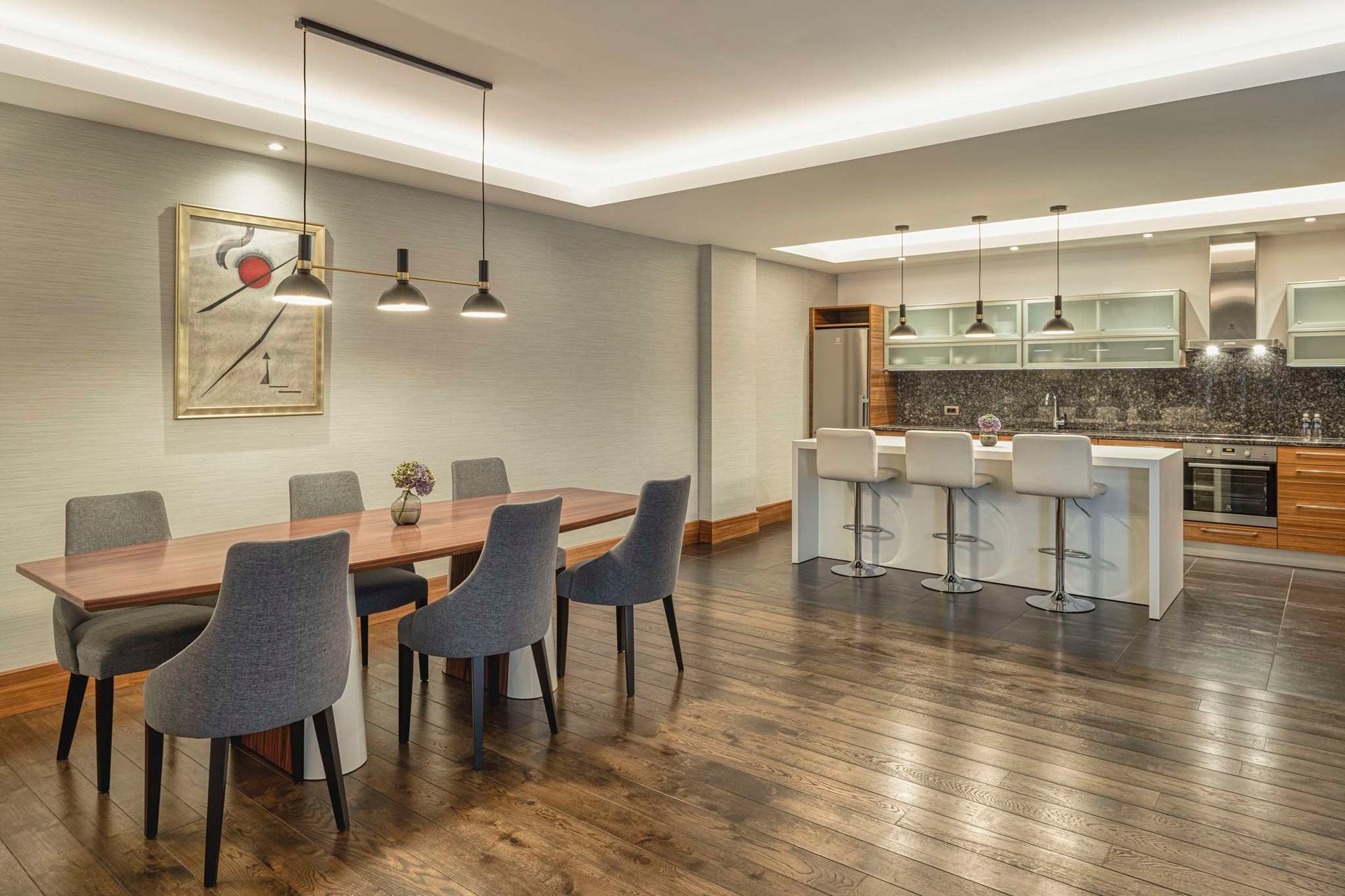 Divu guļamistabu apartamentos ar skatu uz parku ir plaša viesistaba ar atsevišķu ēdamistabas zonu, pilnībā aprīkota virtuve, divas guļamistabas, kas ietver galveno guļamistabu ar "king" izmēra gultu, drēbju skapi un privāto vannas istabu ar vannu un dušas kabīni un otru guļamistabu ar divām atsevišķām gultām, lielu skapi, veļas mašīnu un veļas žāvētāju. Viesiem ir neierobežota piekļuve viesnīcas greznajam Kempinski The Spa.