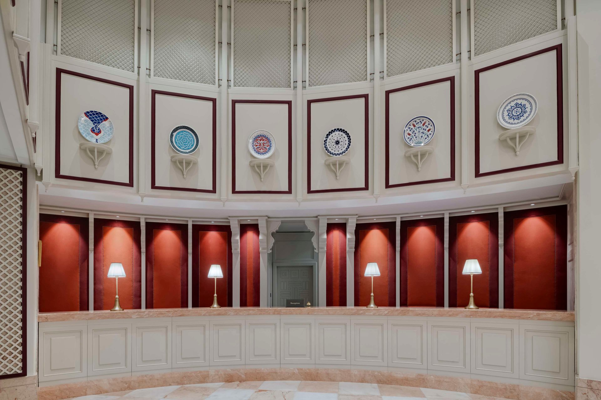 Как только вы войдете в вестибюль, вас встретит захватывающий дух вид на Босфор, легендарный водный путь, который веками вдохновлял художников и путешественников. В процессе проектирования черпали вдохновение природные красоты и богатое культурное наследие Стамбула, чтобы создать привлекательное и впечатляющее пространство. Обновленный вестибюль отличается высоким потолком, украшенным большой люстрой в муранском стиле, плиткой местного производства и элегантной зоной отдыха, которая излучает роскошь. Цветовая гамма с насыщенным бордовым происходит от «кафтана», который был символом власти. Оттенки зелени создают утонченную атмосферу, а из больших окон открывается потрясающий вид на пролив Босфор.
