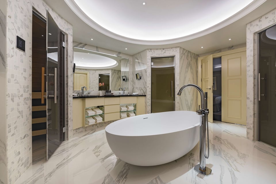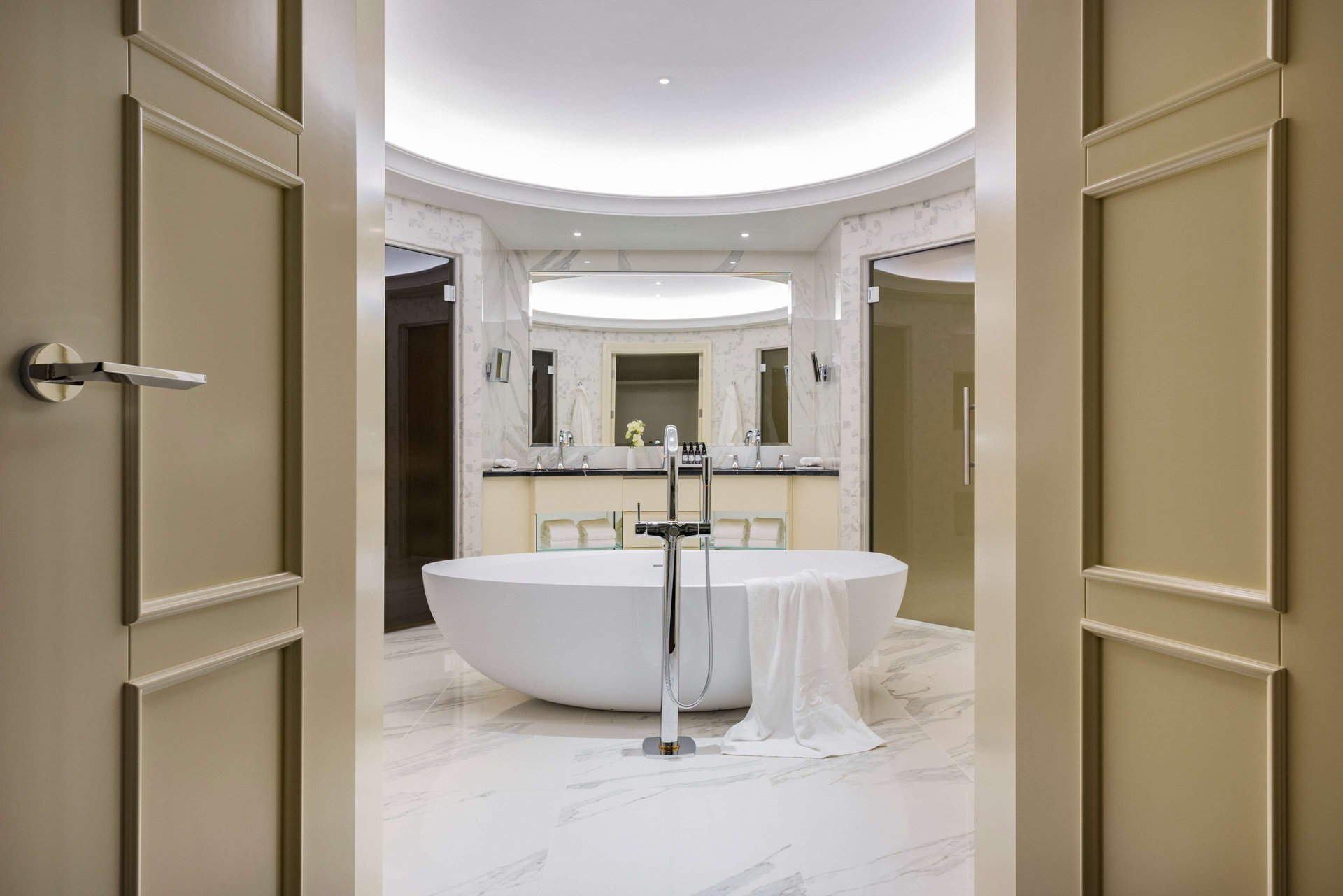 Испытайте абсолютную роскошь и комфорт, наслаждаясь эксклюзивным пространством со всеми современными удобствами, которые могут вам понадобиться, чтобы сделать ваш визит незабываемым. Площадь Президентского люкса составляет 278 кв. м. В нем есть спальня с большой кроватью, гостиная с камином, столовая , где можно собраться за праздничным обеденным столом, частная сауна, парная комната и кинозал. Гостям отеля предоставляется доступ в Kempinski The Spa и круглосуточный фитнес-центр.