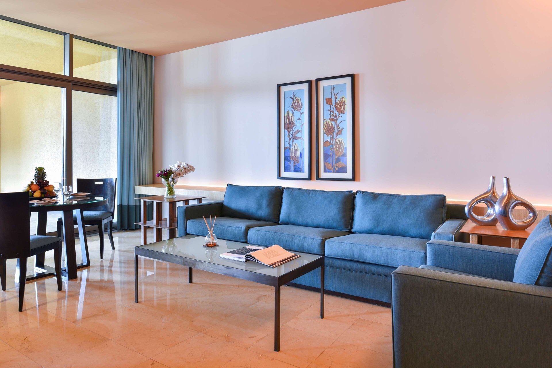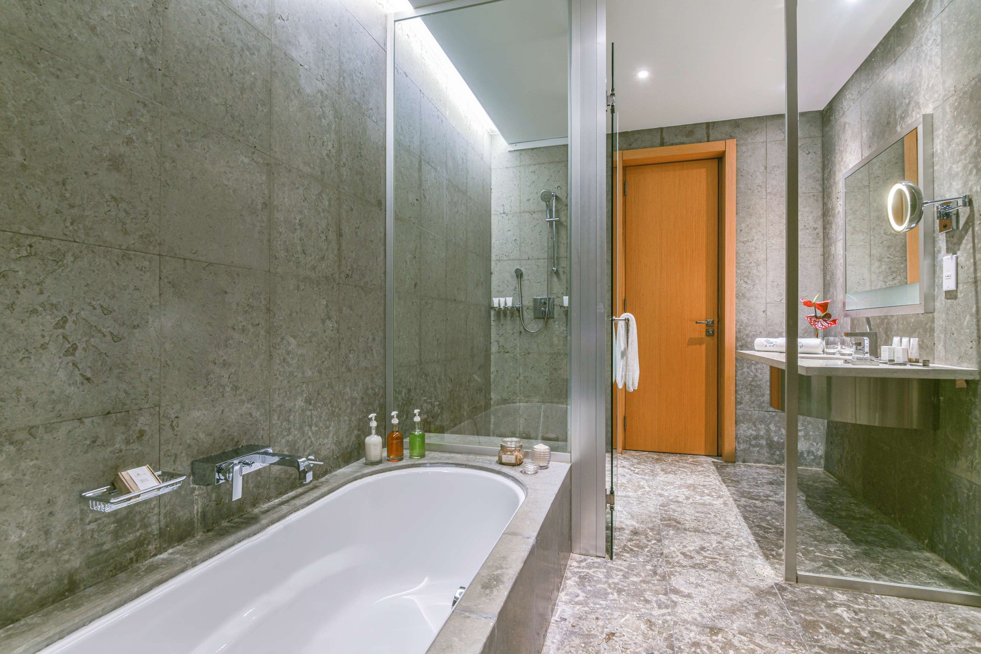 Кондиционер с индивидуальным климат-контролем, рабочий стол, вместительный гардероб и место для переодевания, отдельная зона отдыха, частная терраса с 55-дюймовым IP-телевидением и международными каналами, электронный сейф в номере. Ванные комнаты построены из местного камня и оснащены биде, увеличительным зеркалом, отдельным душем и ванной. Во всех номерах есть следующие удобства и удобства: туалетно-косметические принадлежности Kempinski, гладильная доска, бесплатный мини-бар (безалкогольные напитки), бесплатный доступ в Интернет, принадлежности для приготовления чая и кофе.