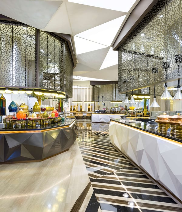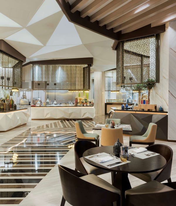 Ресторан представляет блюда мировой кухни, такие как левантийская и европейская. Уголок бистро и концепция временных предложений способствуют общению гостей с фантастической командой поваров, которые всегда готовы уделить внимание гостям.